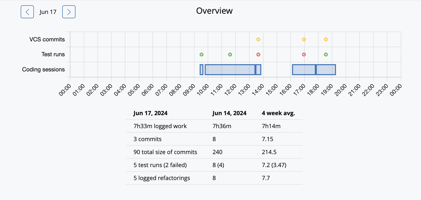 - your coding sessions, i.e. how long are you active in the IDE and for which project